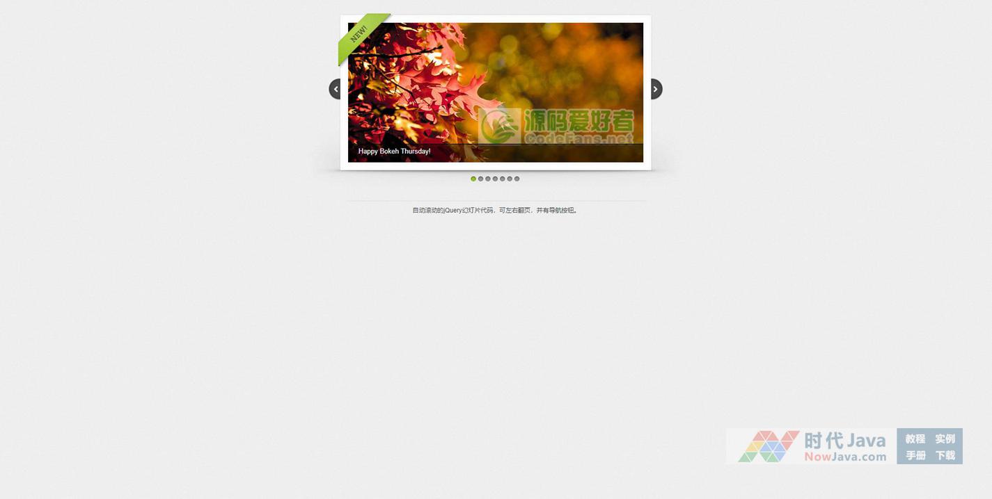 一个jQuery焦点图切换,带文字标题等介绍,而且还有动画效果噢,这款滚动式的幻灯片设计的也挺漂亮,两侧的半圆按钮可控制图片切换,可设置很多张,不过考虑网页加载速度的话,一般是5-6那样子比较合适,太多的图片会导致网页变慢,希望大家喜欢哦。