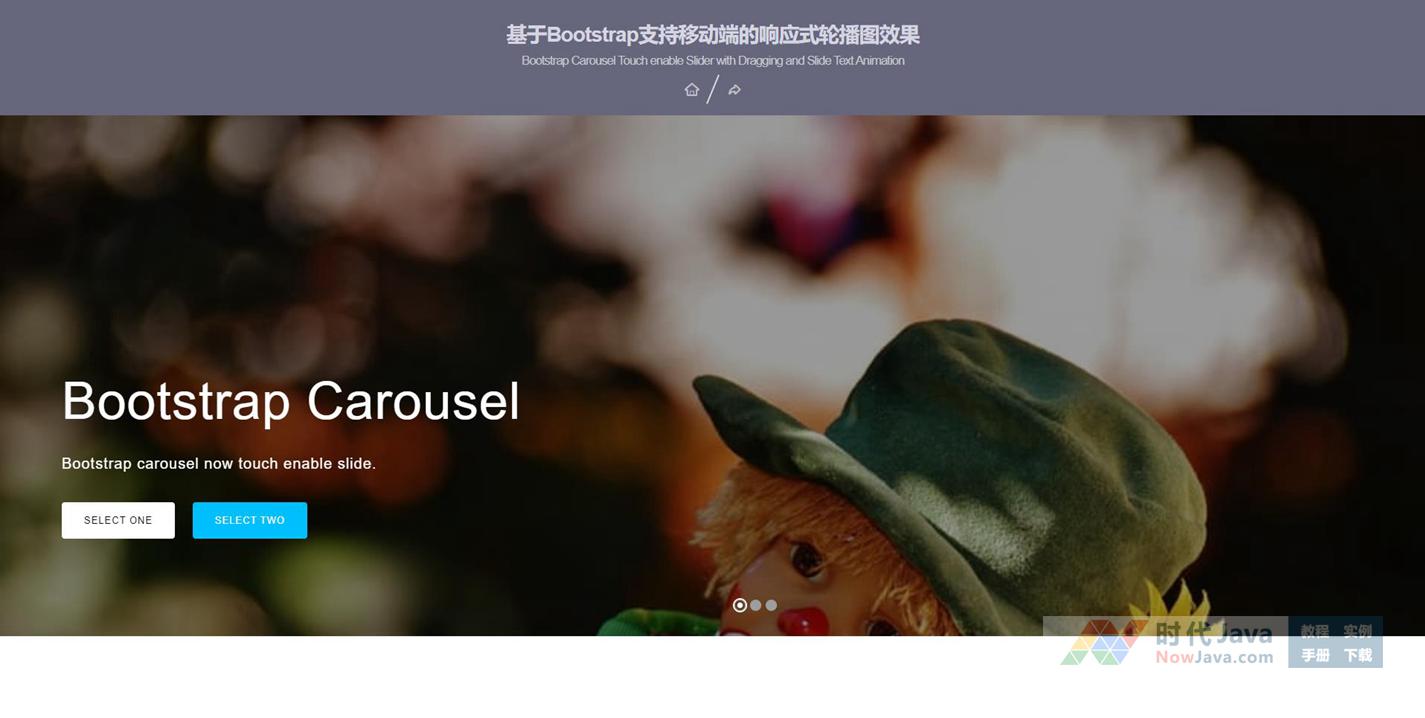 bootstrap-carousel-touch-slider是一款基于Bootstrap支持移动端的响应式轮播图效果。该轮播图特效可以使用手指进行滑动切换。并且它和animate.css结合,可以制作出各种炫酷的文字动画效果。本段代码兼容目前最新的各类主流浏览器,适用浏览器:搜狗、360、FireFox、Chrome、Safari、Opera、傲游、世界之窗,不支持IE8及以下浏览器。是一款不错的的特效插件,有兴趣的朋友们可以来下载试试,希望大家喜欢!