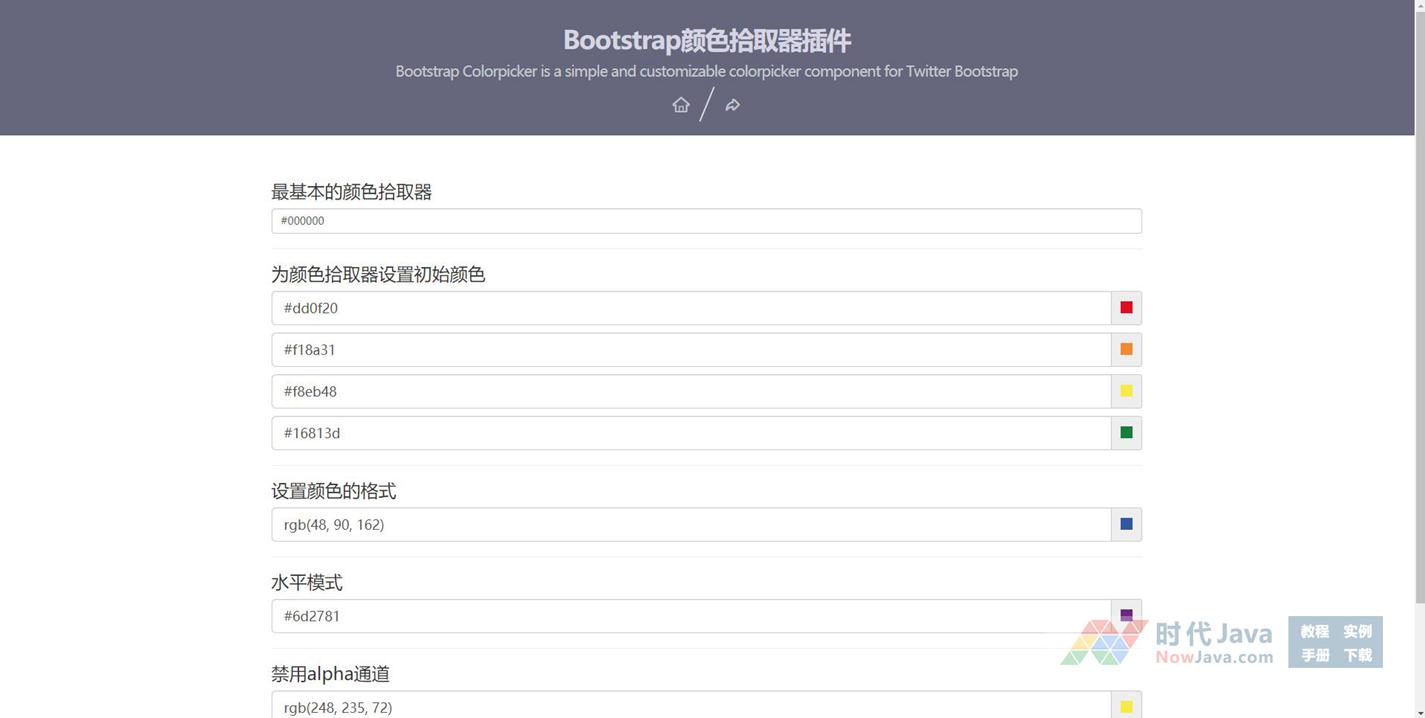 Colorpicker是一个基于Bootstrap的jquery颜色选择器插件。该jquery颜色选择器插件允许你选取颜色,包含基本颜色设置、初始颜色等,它提供多种颜色格式:hex, rgb,rgba,hsl,hsla,并提供功能强大的API来控制颜色拾取器。欢迎下载!本代码适用浏览器:搜狗、360、FireFox(建议)、Chrome、Safari、Opera、傲游、世界之窗,不支持IE8及以下浏览器,首选火狐浏览器。是一款不错的的特效插件,需要的朋友可以下载!希望大家喜欢!