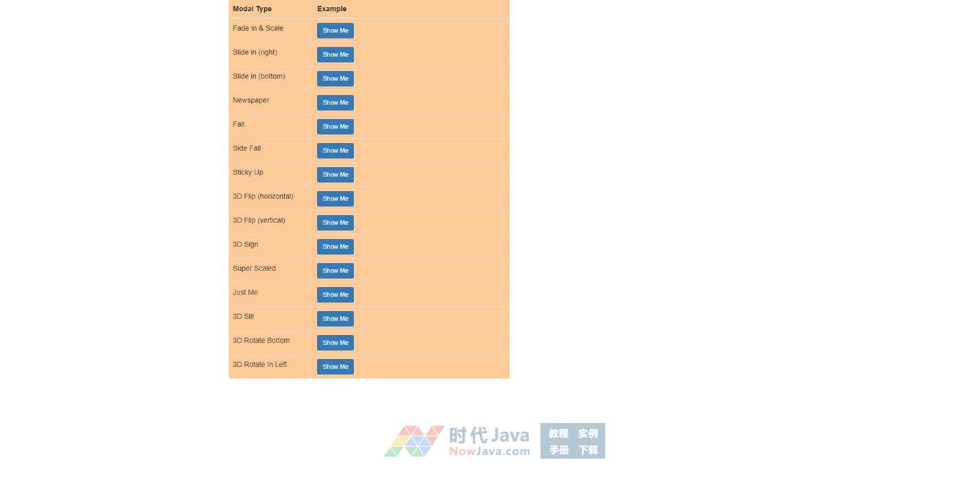 BootStrap模态框弹出层效果特效源码是一款15种模态框弹出效果代码。每种方式都很经典炫酷,具有参考价值,本段特效源码可以在各大网站使用,有需要的朋友直接下载使用,本段源码兼容目前最新的各类主流浏览器,是一款非常优秀的特效源码,希望对大家有所帮助,有问题及时跟我留言!