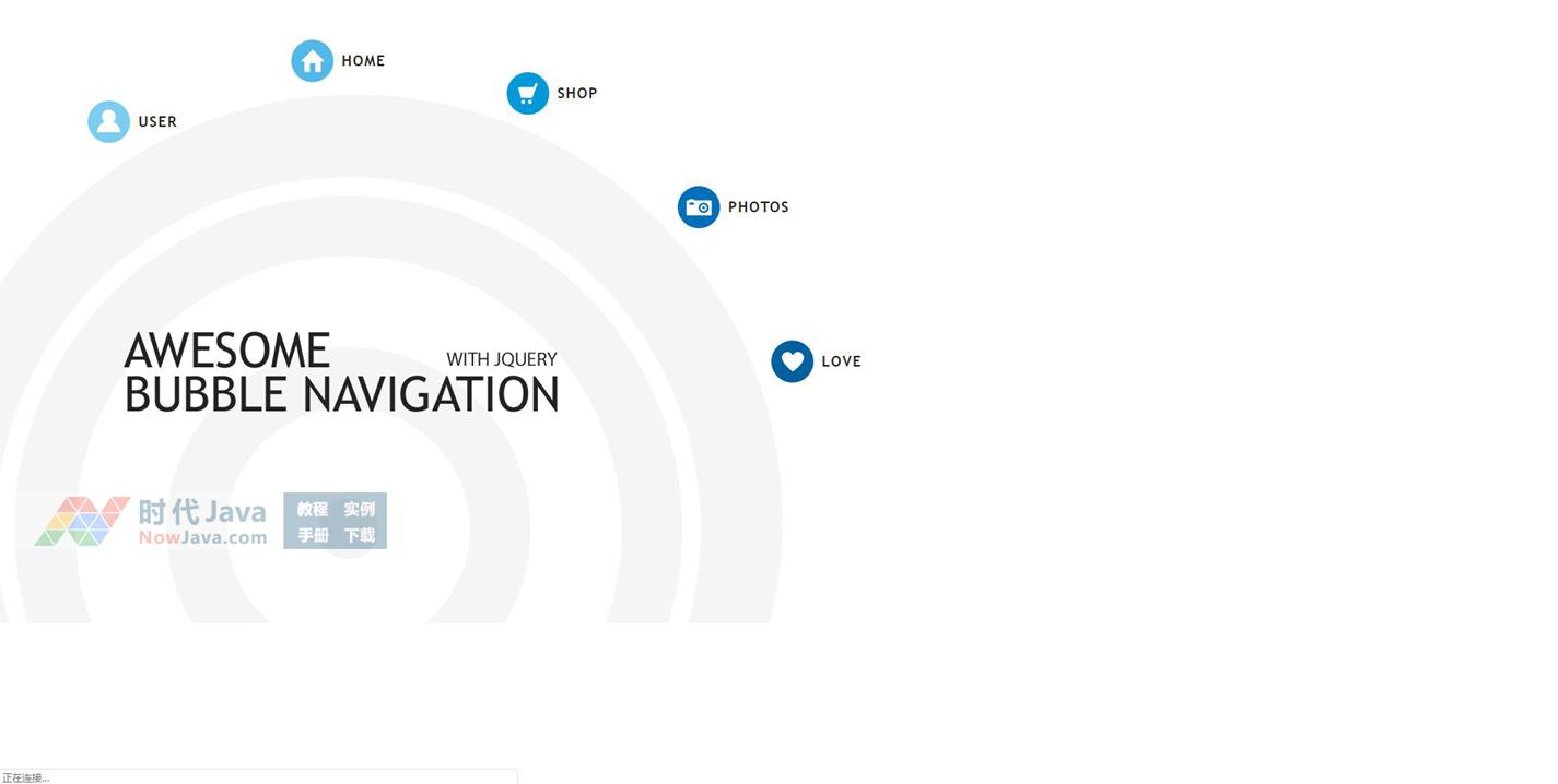 jQuery实现的超酷泡泡导航菜单效果,菜单是一个圆形效果,每一个菜单项都是一个泡泡,经测试鼠标滑过还有泡泡放大效果,建议爱酷的朋友下载使用哈