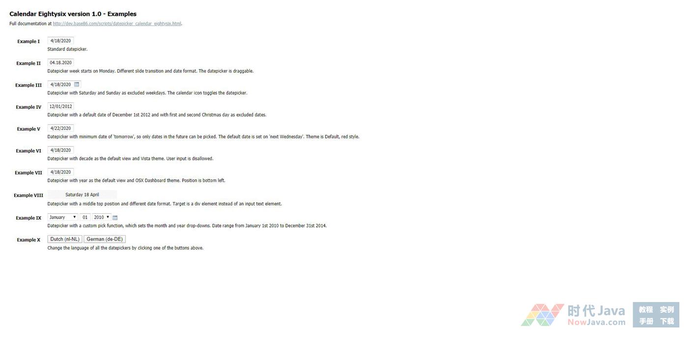 Calendar-eightysix是一款由jQuery和Mototools共同打造的日历插件,演示效果如上图所示,界面十分精巧美观,压缩包内自带的示例很丰富,有近10个之多,各式各样的调用方式一网打尽,希望大家认真研究示例文件,总有一种用法会让您满意的。