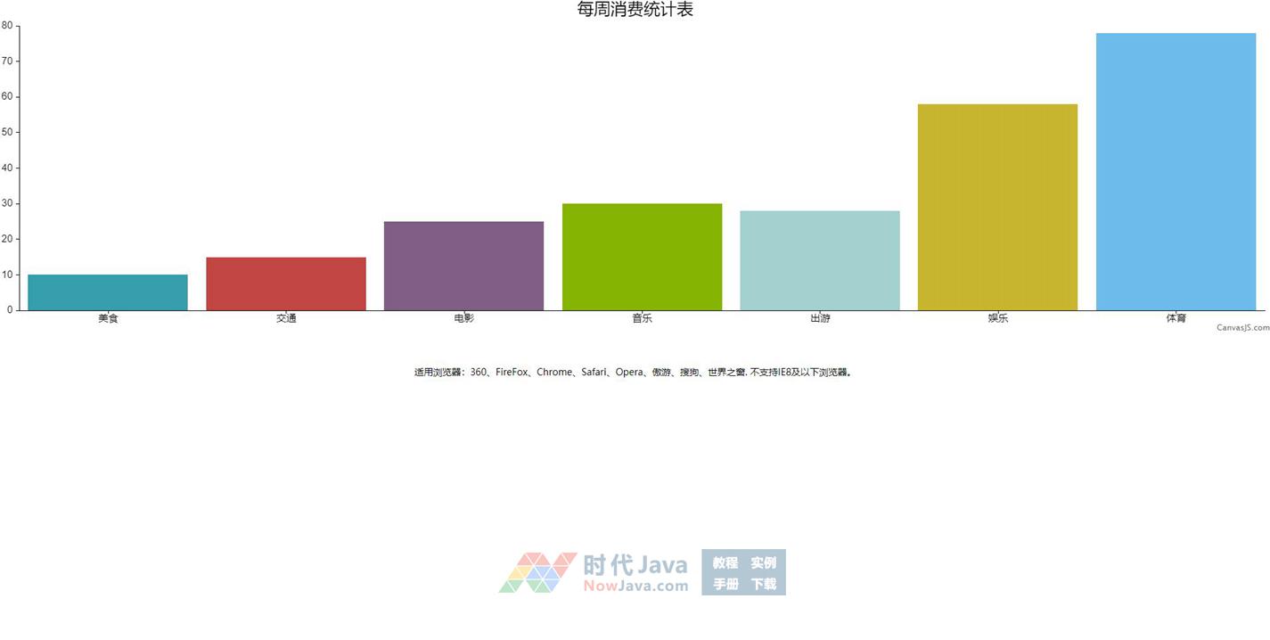 CanvasJS实现的消费统计柱状图特效源码是一段实现了以柱状图的效果显示每周消费统计表数据效果代码,本段代码适应于大部分网页使用,欢迎有需要的朋友们前来下载使用。欢迎对此段代码有兴趣的朋友们前来下载使用。