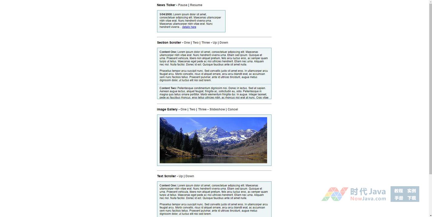 JS实现的综合性滚动效果,可以实现任意内容的滚动切换显示,幻灯片显示,可以定制滚动方向