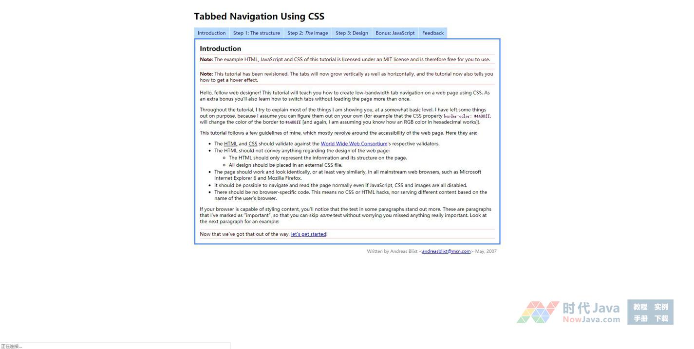 这是国外脚本爱好者实现的CoolTab,这是示例,它将网页中的很多内容用一个选项卡来实现,比如我们用它可制作一些页面底部的信息,像关于我们、联系方式、网站声明、广告联系之类的,每点击一个选项卡看上去是不同的内容,实际上是在一个网页中。而且在每个选项卡的内部我们想怎么布局都行,源码爱好者示例截图如上所示,设计的也不错,兼容性方面做的很好。