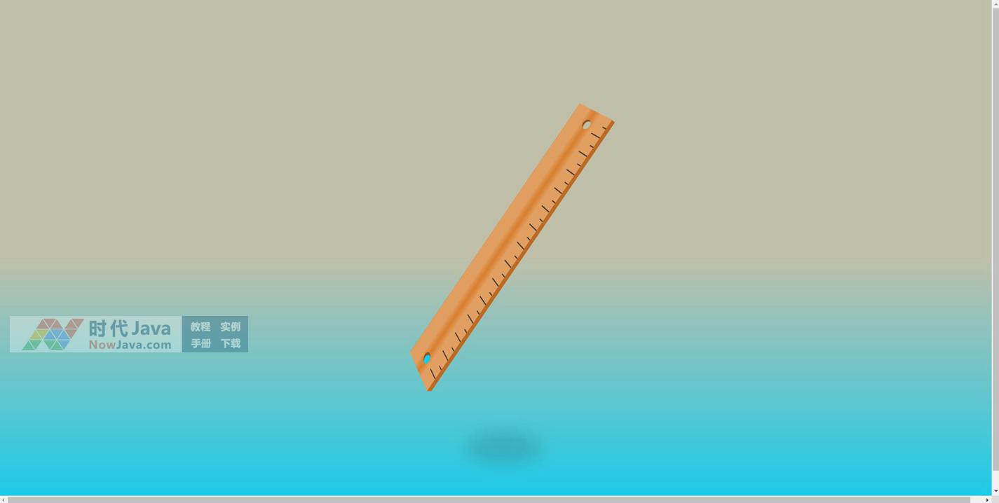 这是一款基于纯CSS3实现的3D木质尺子旋转动画效果源码。画面中一把木质尺子围绕其重心做3D旋转运动,同时尺子下方的阴影也随着尺子的旋转而变换形状,整体动画效果逼真自然。该源码采用纯css3实现,没有引入任何外部图形或js脚本元素。建议使用支持HTML5与css3效果较好的火狐(Firefox)或谷歌(Chrome)等浏览器预览本源码。