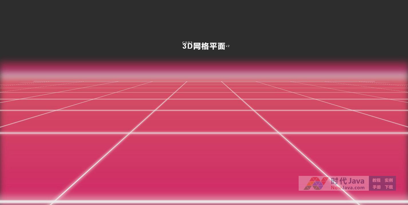 这是一款基于纯CSS3实现的3D网格平面无限延伸动画效果源码。带有红色渐变效果背景的平面上出现白色的网格由远及近逐渐延伸开来,并呈现出网格无限延伸以及观察视角不断前进的动画视觉效果。该动画采用纯css3实现,没有引入任何外部图形或js脚本元素。建议使用支持HTML5与css3效果较好的火狐(Firefox)或谷歌(Chrome)等浏览器预览本源码。
