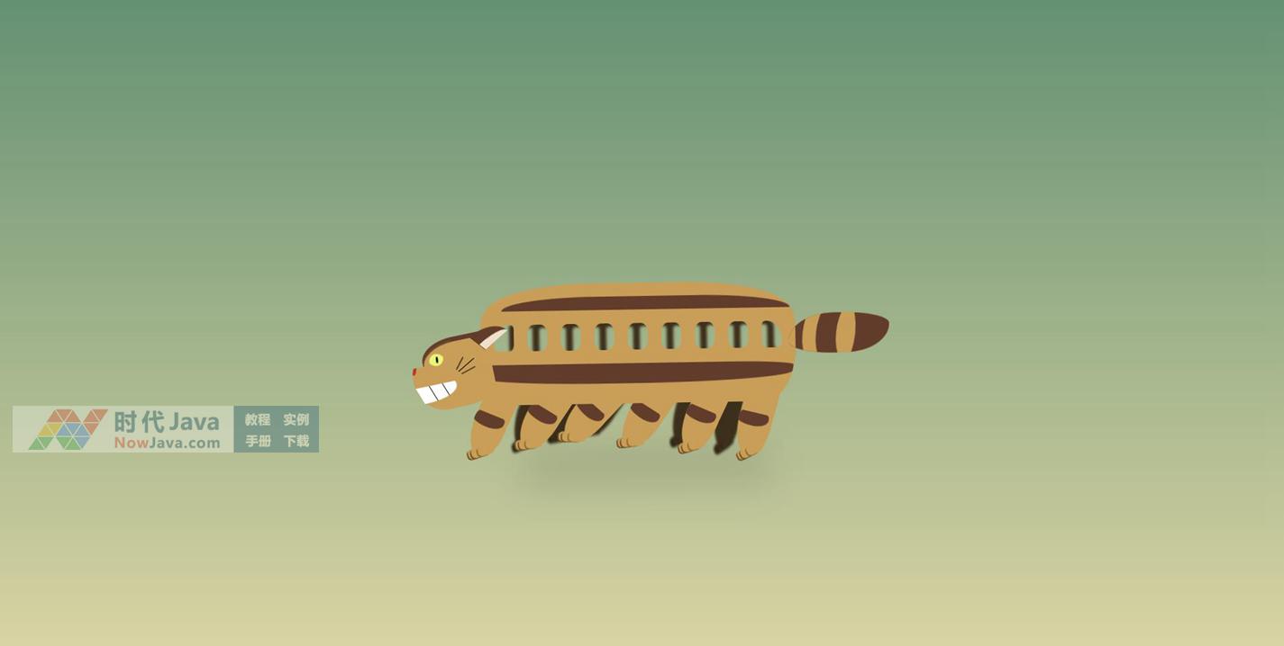 这是一款基于纯CSS3实现《龙猫》中像猫形状的公交车动画效果源码。画面中是一辆动画电影《龙猫》里的猫形状公交车,猫的一排共6对猫腿呈现出类似波浪形状的跑动着。同时车窗、车体都带有比较明显的阴影视觉效果。极其逼真的还原再现了《龙猫》中那辆猫形状公交车。该动画效果采用纯css3绘制实现,没有引入任何外部图形或js脚本元素,建议使用支持HTML5与css3效果较好的火狐(Firefox)或谷歌(Chrome)等浏览器预览本源码。