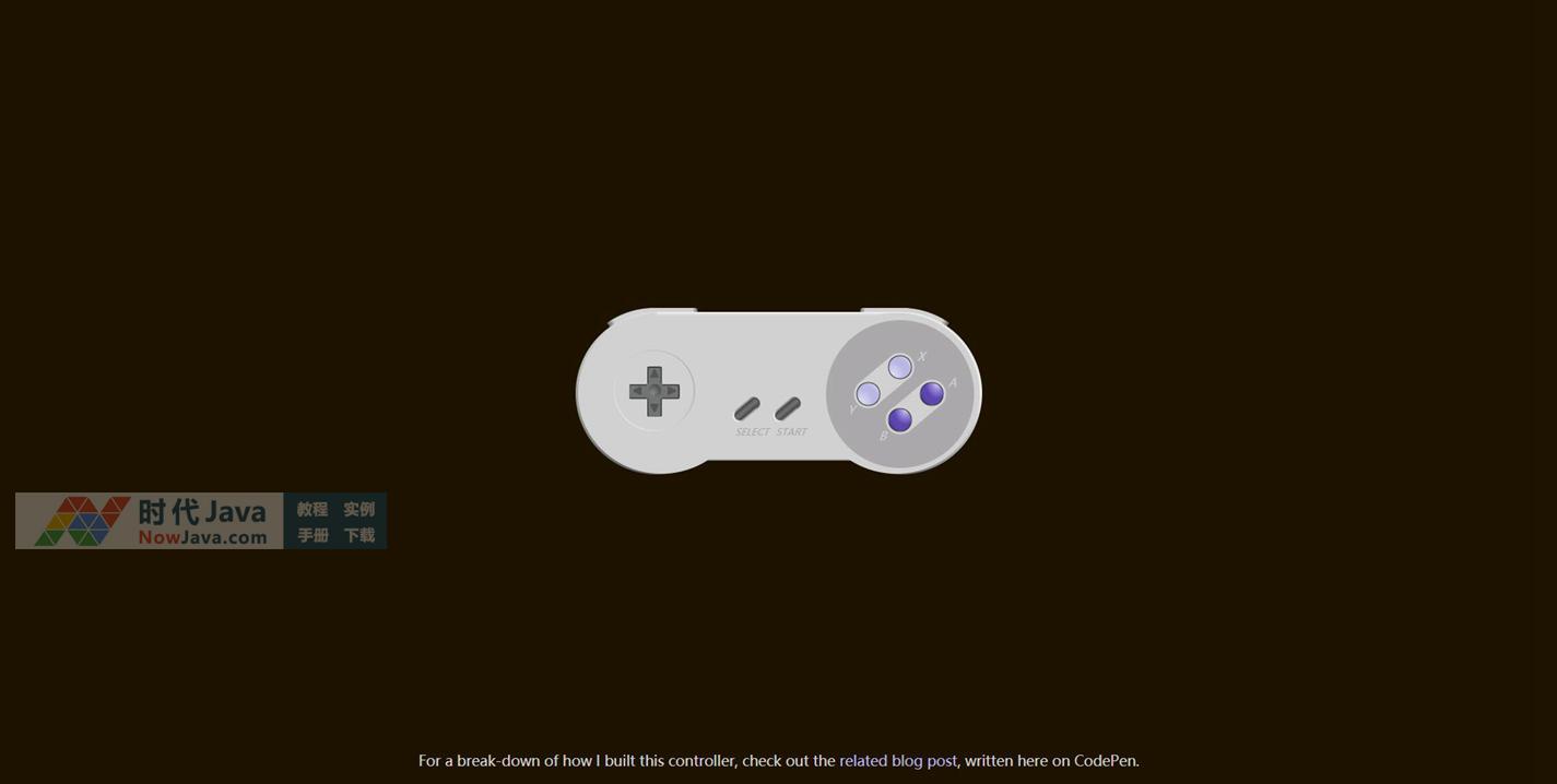 这是一款基于纯CSS3绘制的游戏机手柄效果源码。画面中采用纯css3绘制出逼真的游戏手柄效果,游戏手柄图案中带有左侧方向键、中间的start与select键,以及右侧的“A”,“B”,“X”,“Y”四个按键。并且带有逼真的凹凸明暗3D视觉效果。该图案采用纯css3绘制实现,没有引入任何外部图形或js脚本元素。建议使用支持HTML5与css3效果较好的火狐(Firefox)或谷歌(Chrome)等浏览器预览本源码。