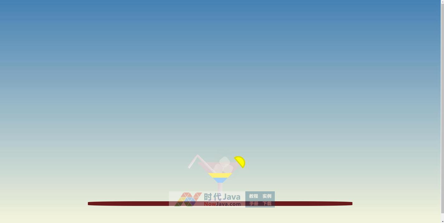 这是一款基于纯CSS3实现的三角杯和夏日鸡尾酒动画效果源码。在带有夏日风情的渐变色背景下,一张台面上放着一只三角杯,三角杯中盛有颜色分层的鸡尾酒,同时鸡尾酒中还带有冰块,杯子边缘上放有一片柠檬。一根吸管斜插在杯中。杯子中的鸡尾酒上下浮动着。整体动画简洁逼真,动画效果基于css3 animation属性绘制实现。建议使用支持HTML5与css3效果较好的火狐(Firefox)或谷歌(Chrome)等浏览器预览本源码。