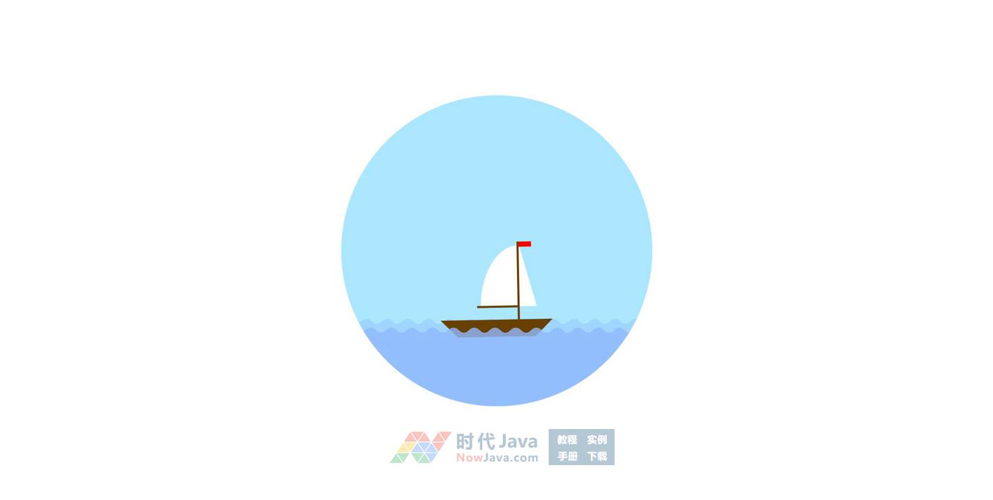 这是一款基于纯CSS3实现大海中航行的小帆船动画效果源码。圆形的画面中心里,波浪翻滚的海面上一只小帆船在大海中迎风前行。海平面波浪带有正弦波型变换的动画效果,海面上的帆船随着海浪左右摇晃,帆船顶上的红旗迎风飘扬,整体场景动画效果简约逼真。该动画采用纯css3绘制实现,没有引入任何外部图形或js脚本元素。建议使用支持HTML5与css3效果较好的火狐(Firefox)或谷歌(Chrome)等浏览器预览本源码。