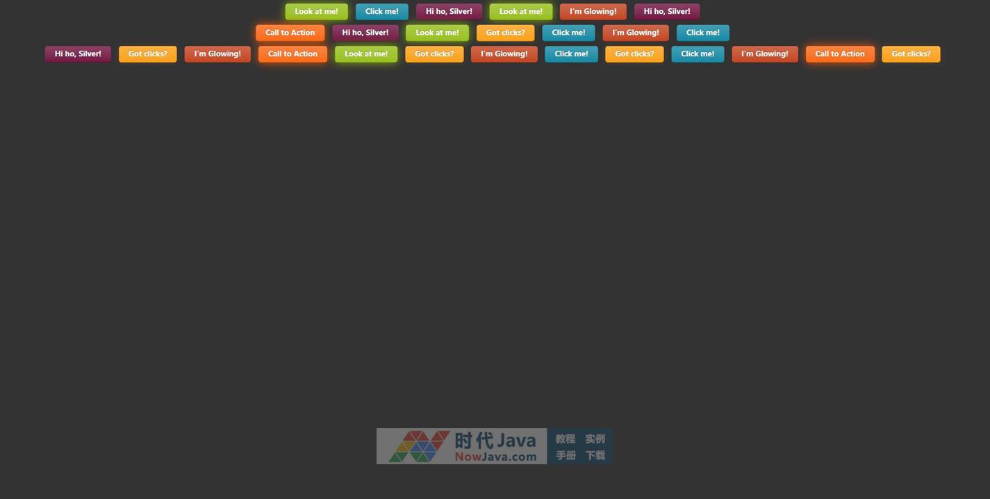 这是一款基于纯CSS3实现的发光按钮特效,多种色彩的按钮排列在网页上,伴随着闪闪发光的效果,CSS3的强大肯定会让你叹为观止。该CSS3按钮发光动画主要是利用了webkit的动画属性,让各种颜色规律性的发生变化。也许这么绚丽的CSS3按钮应用不那么广泛,但是在一些需要特效的网页中用来做提交表单按钮或者菜单项,那就非常方便了。建议用户使用支持HTML5与css3的火狐或谷歌等浏览器预览本实例源码。