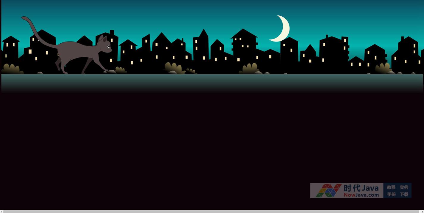 这是一款基于纯CSS3+SVG实现行走在街道上的猫动画场景效果源码。画面中远处是城市街道建筑场景,夜空之中一弯明月挂在空中。夜空下的天空也带有夜幕颜色渐变的视觉效果。近处一只猫行走在街道上。猫行走时四肢交替变换、尾巴摆动,画面效果栩栩如生。建议使用支持HTML5与css3效果较好的火狐(Firefox)或谷歌(Chrome)等浏览器预览本源码。