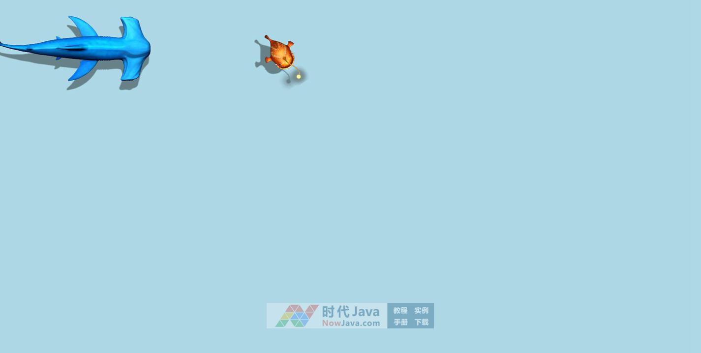 这是一款基于CSS3绘制海中游动的鱼动画效果源码。画面上蔚蓝色的海中有一条双髻鲨与一条安康鱼在自由的游走,且游动过程中带有逼真的阴影效果。该动画基于css3 animation transform属性实现,没有使用js脚本。建议使用支持HTML5与css3效果较好的火狐(Firefox)或谷歌(Chrome)等浏览器预览本源码。