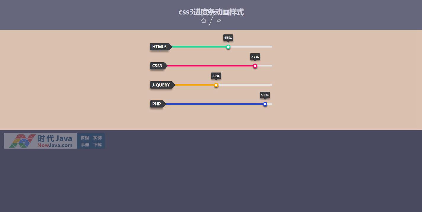 这是一款基于Bootstrap的纯CSS3进度条动画样式特效。该CSS3进度条通过阴影制作立体效果,并使用CSS3 animation来制作进度条的动画特效。效果简单实用,可显示进度百分比,欢迎下载!