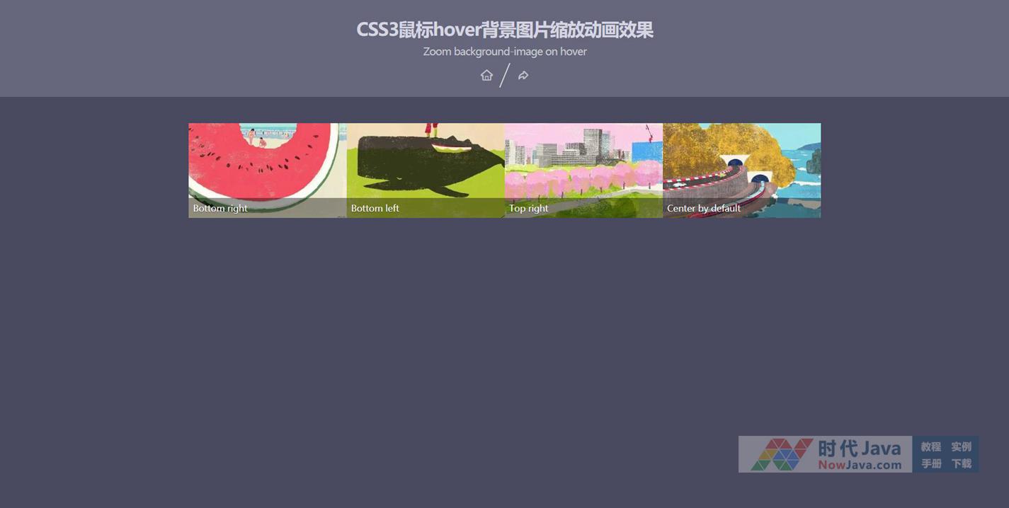 这是一款CSS3鼠标hover背景图片缩放动画效果。该特效是在鼠标hover背景图片时,将背景图片平滑放大。鼠标离开时,背景图片恢复为原来的大小。简单方便,欢迎下载!本代码适用浏览器:搜狗、360、FireFox(建议)、Chrome、Safari、Opera、傲游、世界之窗,不支持IE8及以下浏览器,首选火狐浏览器。是一款不错的的特效插件,需要的朋友可以下载!希望大家喜欢!