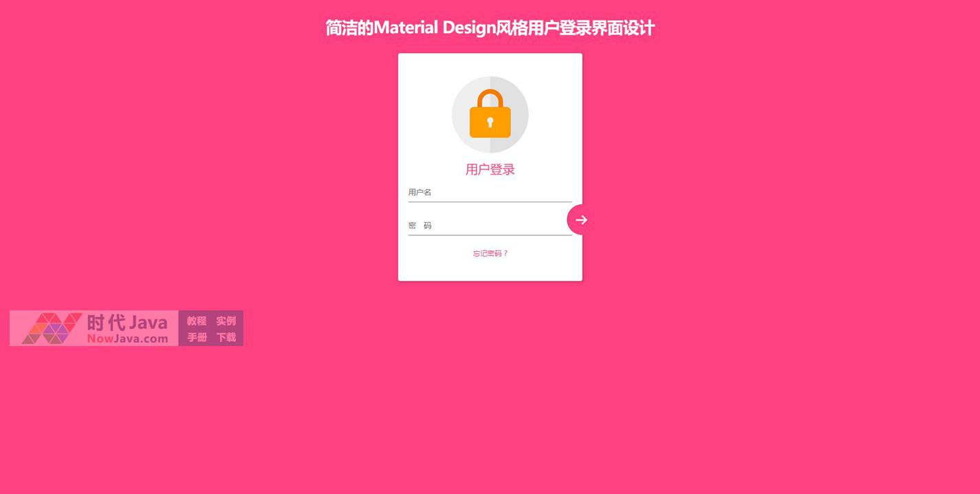 纯CSS3实现简洁Material Design风格用户登录界面特效源码是一款非常漂亮的Material Design风格用户登录界面设计效果的代码。该登录界面采用扁平风格,浮动标签等Material Design元素,使用纯CSS3来完成。 本代码适用浏览器:360、FireFox、Chrome、Safari、Opera、傲游、搜狗、世界之窗. 不支持IE8及以下浏览器。有兴趣的朋友们可以来下载试试吧。本段代码兼容目前最新的各类主流浏览器,是一款非常优秀的特效源码。希望大家可以喜欢!