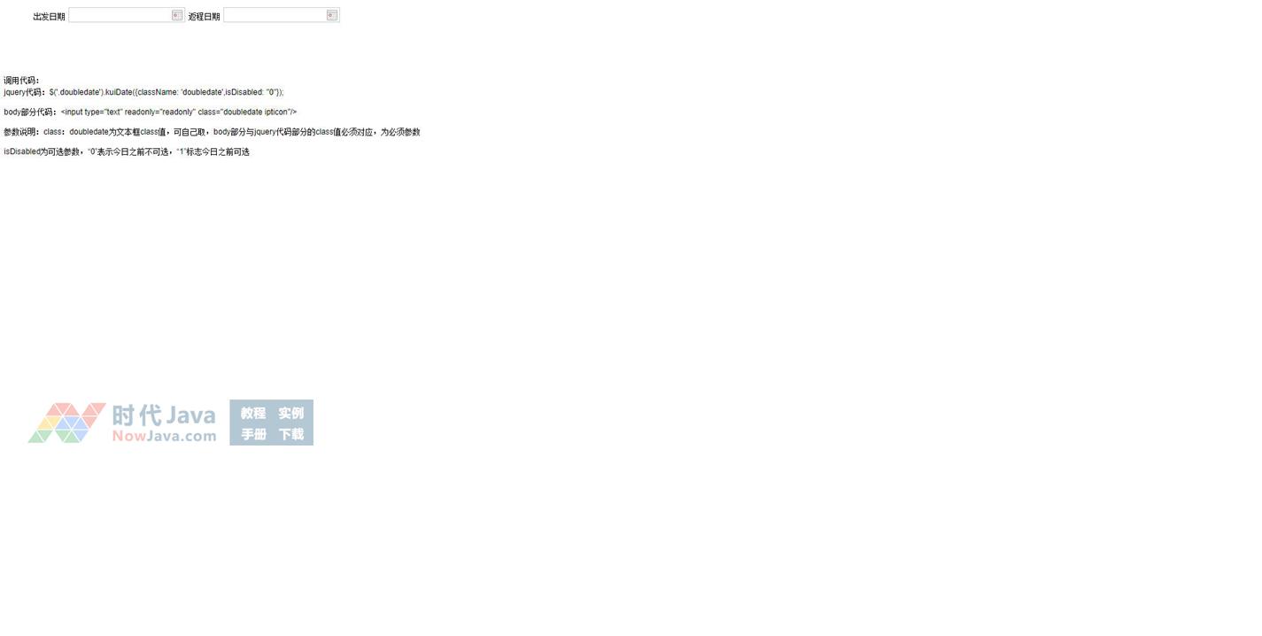 jquery代码:$('.doubledate').kuiDate({className: 'doubledate',isDisabled: "0"});
