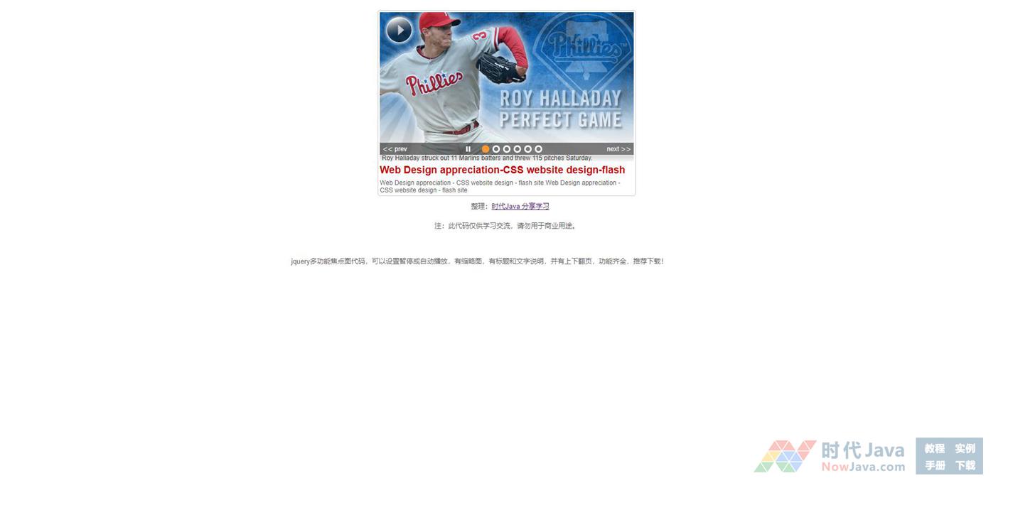 jquery多功能焦点图代码,可以设置暂停或自动播放,有缩略图,有标题和文字说明,并有上下翻页,功能齐全,推荐下载!