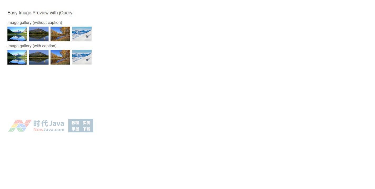 Easy Image Preview jQuery鼠标移上显示大缩略图功能,上边的不带动画,下边那个带有动画效果,就是鼠标在小图上移动的话,弹出的大预览图也会跟着移动,更人性一点,其原理大同小异,欢迎jQuery爱好者参考。