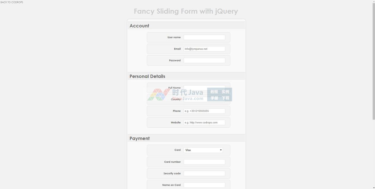 Fancy Sliding Form基于jQuery 多功能滚动翻页表单 仿TAB滚动