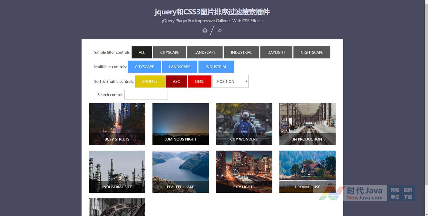 Filterizr是一个jquery和CSS3图片排序过滤插件。它可以对一组图片进行排序,按条件过滤和按关键字搜索。并在显示结果时使用指定的CSS3动画过渡效果。