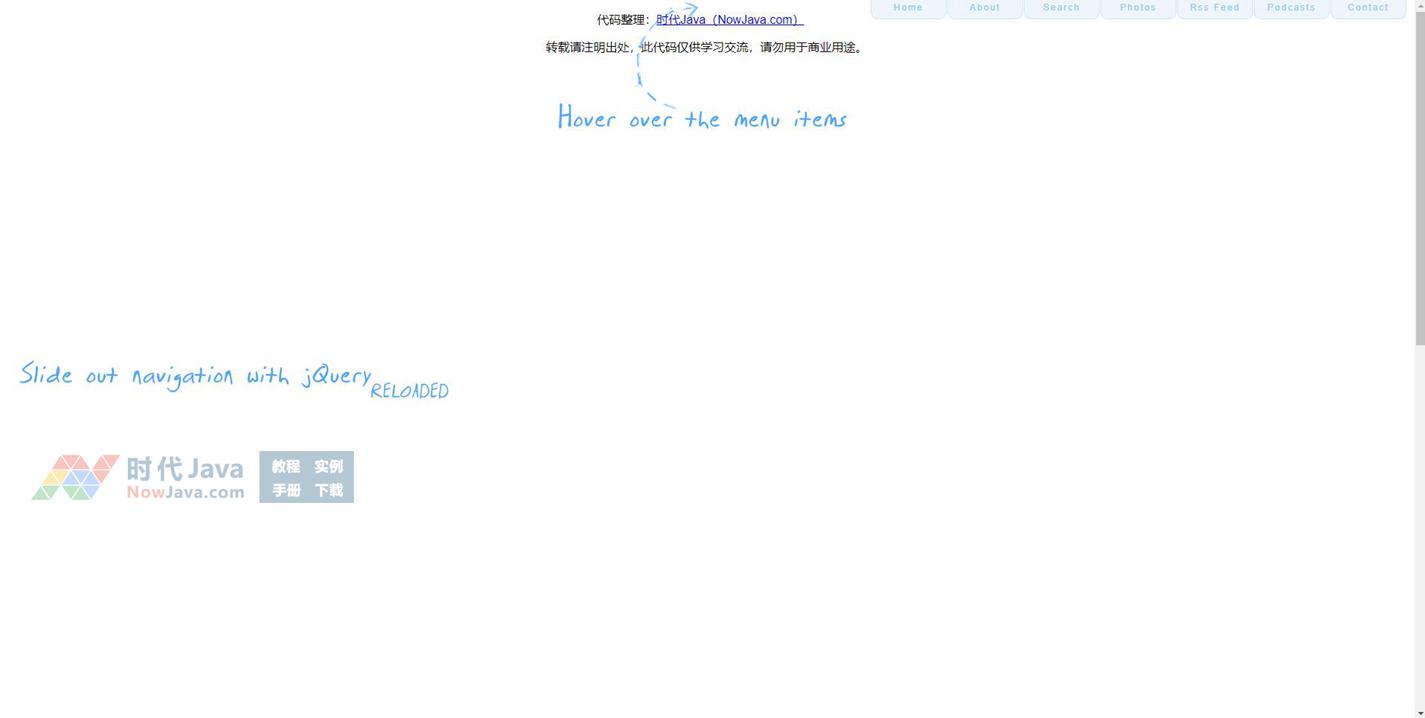 jquery实现的非常漂亮的弹出式图标菜单效果,菜单固定在页面顶端,菜单项以图标的方式显示,鼠标滑过,菜单自然下拉完整显示,经测试效果非常漂亮,建议前端web开发者下载使用