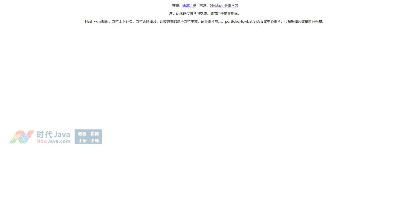 Flash+xml相册,支持上下翻页,支持无限图片,比较遗憾的是不支持中文,适合图片展示。portfolioFlowList(5)为设定中心图片,可根据图片数量自行调整。