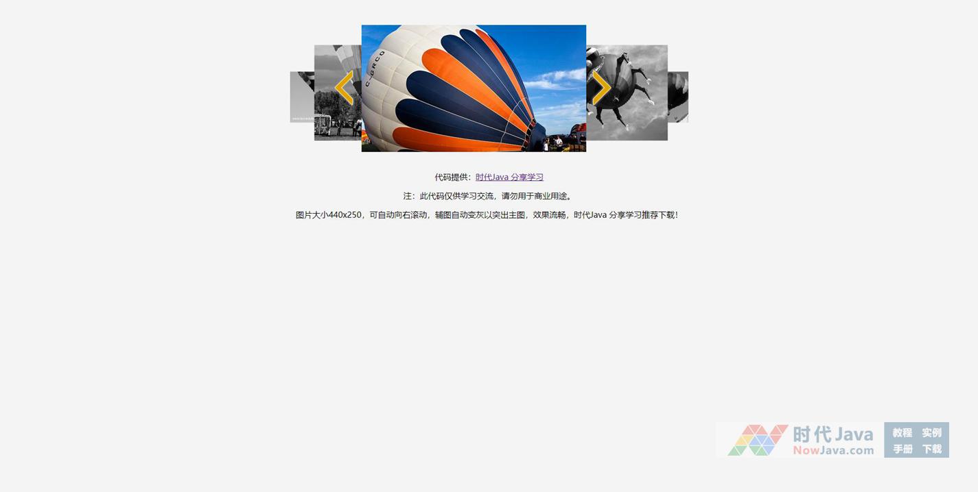 图片大小440x250,可自动向右滚动,辅图自动变灰以突出主图,效果流畅,喜欢的可以试下。