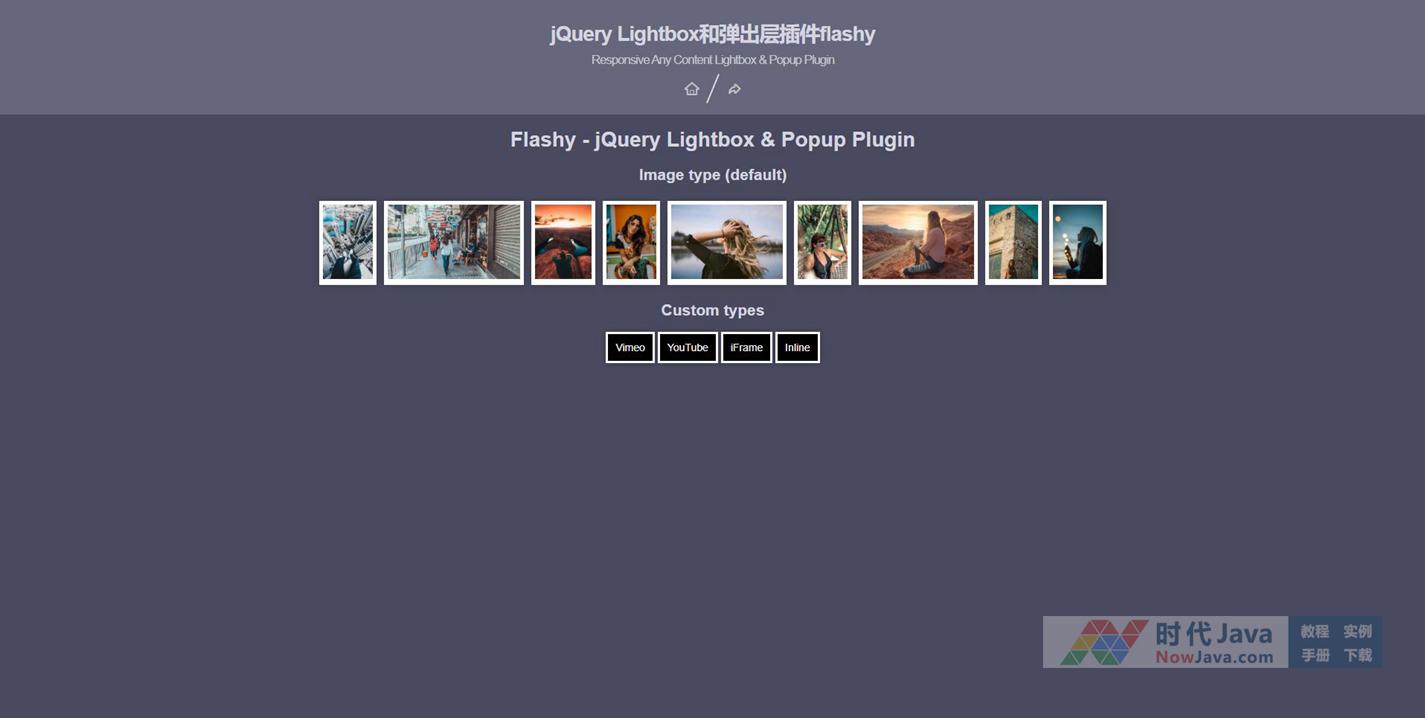 Flashy.js是一款响应式jQuery Lightbox和弹出层插件。该jQuery Lightbox和弹出层插件支持图片,内联内容,iframes,以及vimeo和youtube 视频,功能非常强大。简单实用,欢迎下载!