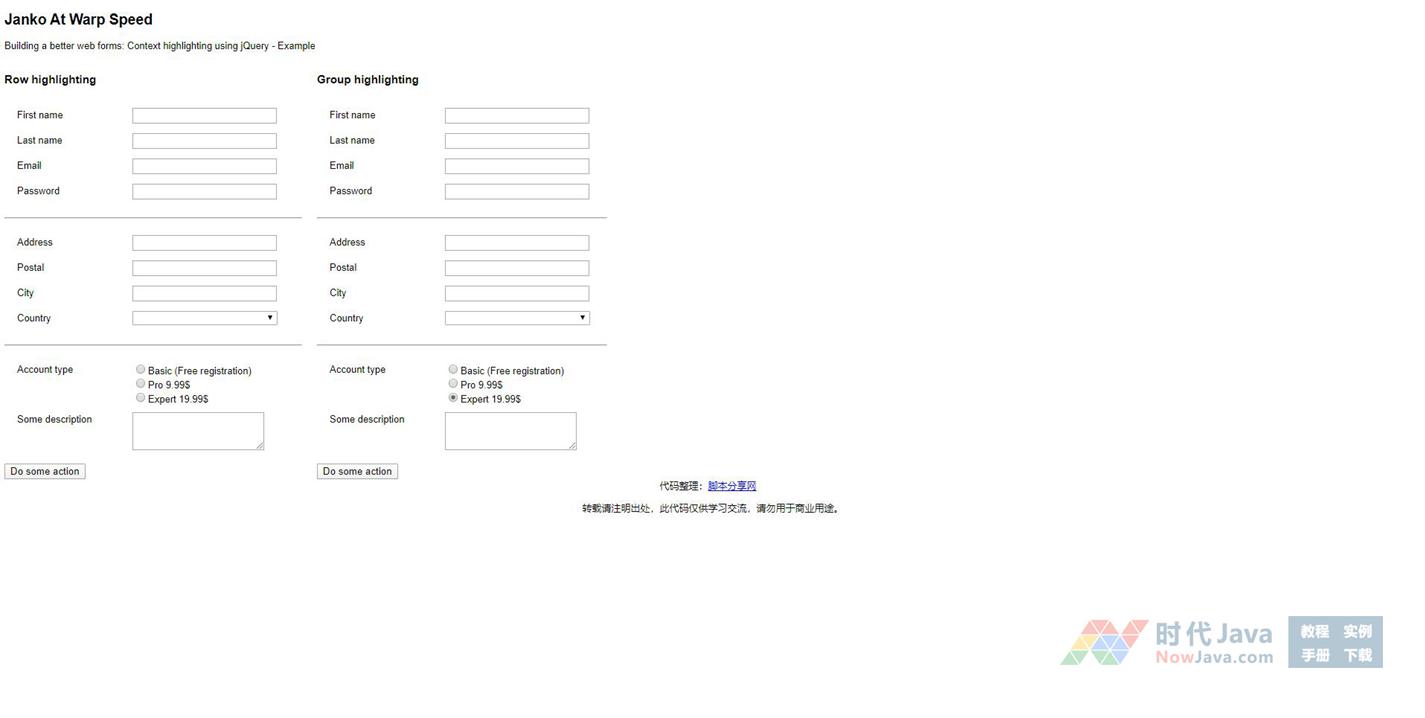 jQuery实现的表单高亮展示效果,聚焦表单时可以让表单整体高亮显示,也可以控制表单内的某个元素高亮显示,经测试相当不错,感性的朋友可以参考下哈