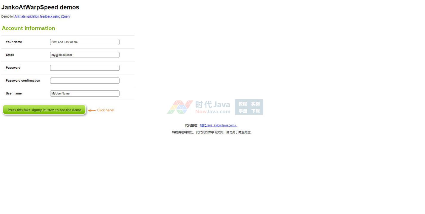 jQuery实现的超棒动态表单验证效果,如果填写数据验证失败,输入框会显示红色,点击按钮后,不合法的输入框会左右摇晃提醒用户,经测试效果效果相当不错非常棒,喜欢的朋友可以下载学习下。