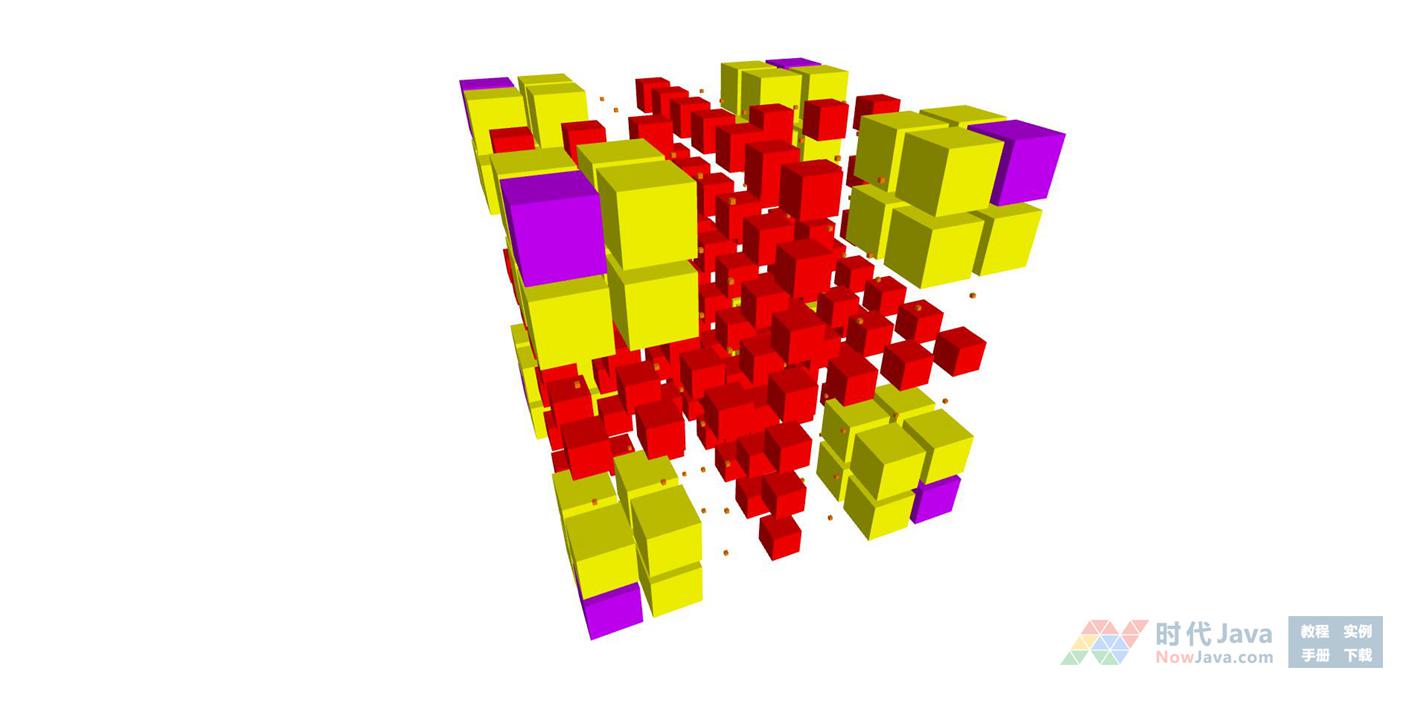 这是一款基于gl-matrix插件实现的立方体矩阵脉冲动画变换效果源码。画面中不断旋转的立方体矩阵中4个颜色区域的立方体群不断呈现出周期性的缩小、放大循环变换视觉效果,类似矩阵脉冲波动变换特效。建议使用支持HTML5与css3效果较好的火狐(Firefox)或谷歌(Chrome)等浏览器预览本源码。