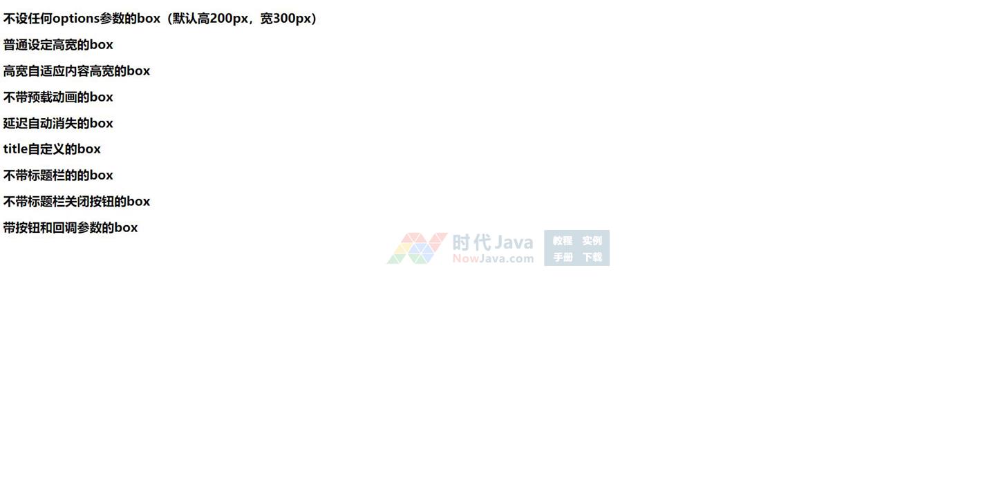 不设任何options参数的box(默认弹出高200px,宽300px的层盒子)