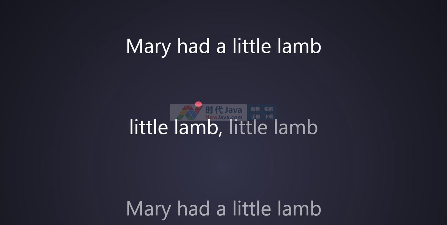 这是一款基于HTML5实现在文本上跳跃的小球动画效果源码。画面中的文字上方一个红色的小球从左到右、从上到下一次从文字上方跳跃经过,小球跳跃过程中接触到的文字由灰白色变为纯白色高亮显示。动画小球跳跃及颜色过渡效果流畅自然。建议使用支持HTML5与css3效果较好的火狐(Firefox)或谷歌(Chrome)等浏览器预览本源码。