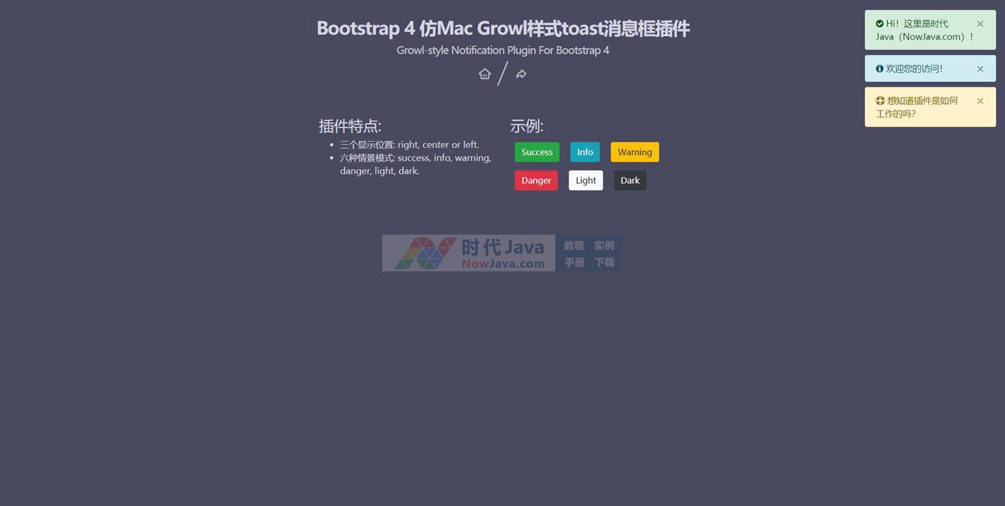 Hullabaloo.js是一款基于Bootstrap 4仿Mac Growl样式toast消息框插件。该jquery插件可以制作出类似Mac系统的toast消息框,并且使用简单,炫酷实用,欢迎下载!