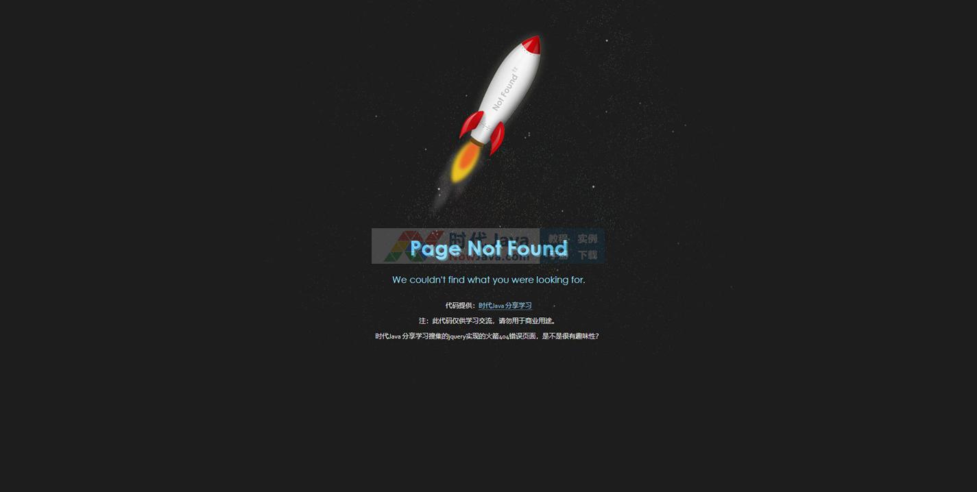 jquery实现的火箭动画效果的404错误页面,比较适合娱乐的场合使用。404就是当页面找不到时,显示的页面。