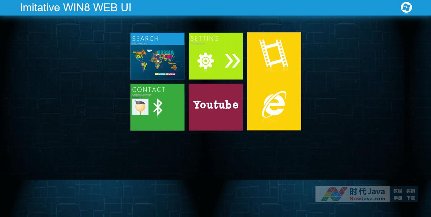 jQuery模拟的WIN8 卡片式界面UI特效,运用CSS3,jQuery等web前端技术模拟的win8的卡片,在兼容性方面,支持IE9,chrome,safari,opera,firefox(chrome显示效果最佳) 等众多主流的Web浏览器。