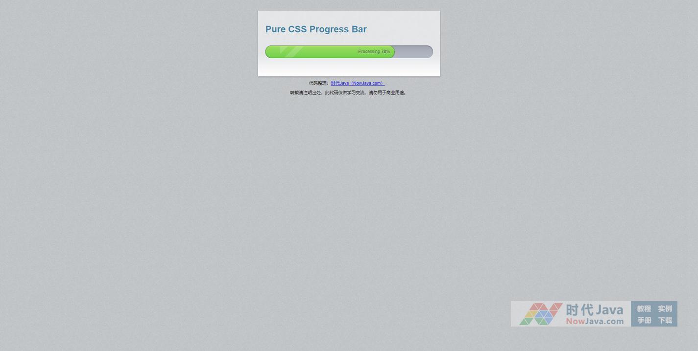 CSS3+jquery制作的超酷进度条效果,进度条可以自己控制走动,进度条上可以显示百分比,加载完成以后显示内容,经测试效果相当不错,感兴趣的你可不要错过了哈