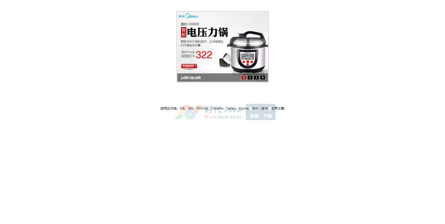 是一款点击图片下方的数字按钮图片上下切换的代码。本段代码适应于所有网页使用,有兴趣的朋友们可以来下载试试吧。本段代码兼容目前最新的各类主流浏览器,是一款非常优秀的特效源码。希望大家可以喜欢!