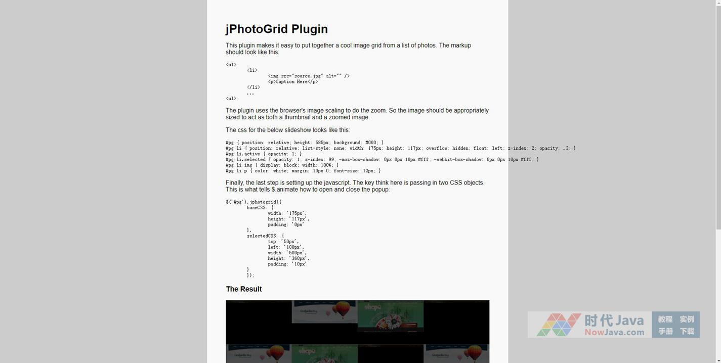 jQuery实现的效果非凡的可放大显示的图片库效果,把缩略图都放在grid表格里面,点击图片放大显示,再次点击自动缩小,照片库类似照片墙的效果,经测试效果相当不错,建议前端web开发者下载使用