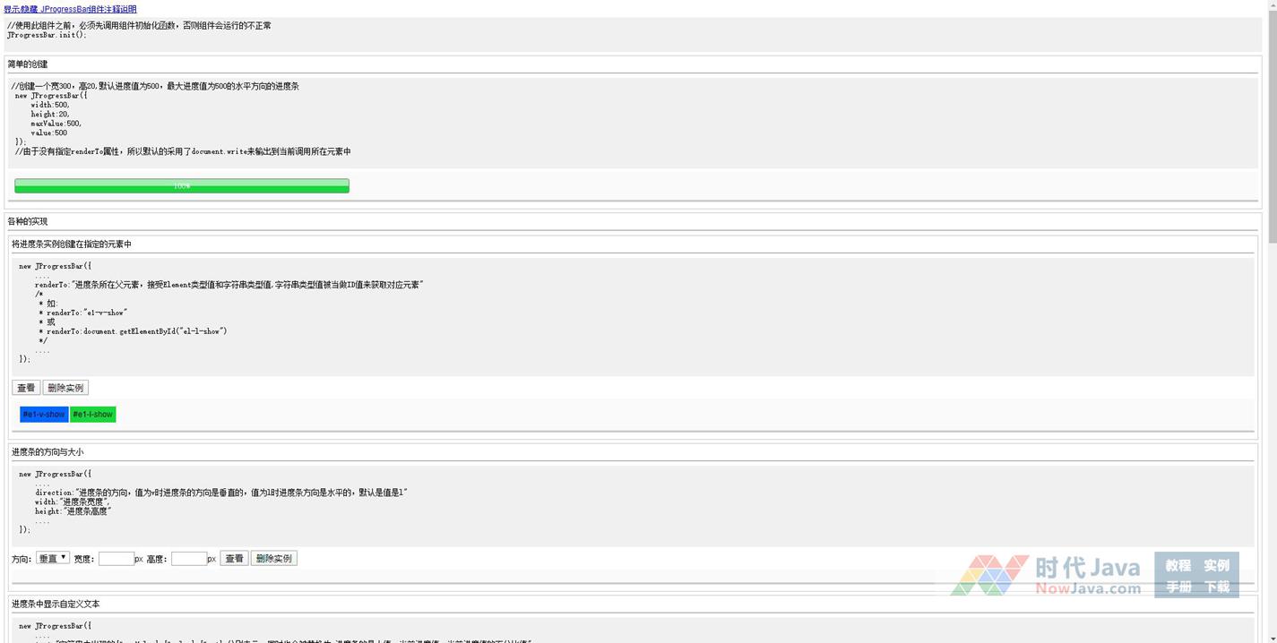 * text : {String}, 进度条中显示的文字字符串,字符串中出现的{#maxValue},{#value},{#pct} 分别表示,同时也会被替换为 进度条的最大值,当前进度值,当前进度值的百分比值
