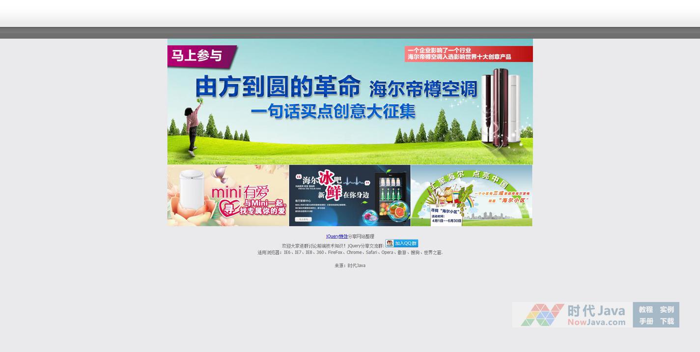 jQuery仿海尔官网全屏焦点图特效代码,带有左右箭头的jQuery焦点图切换特效。当焦点图切换时,下方的三块小图也相对应的进行切换。