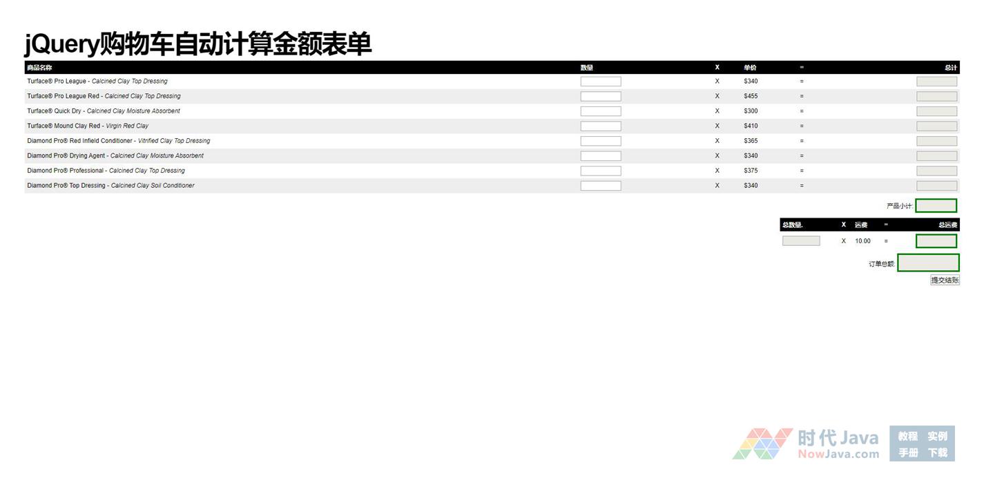 jQuery购物车自动计算金额表单适用于商城购物结算。经测试,效果相当不错,作者推荐下载。