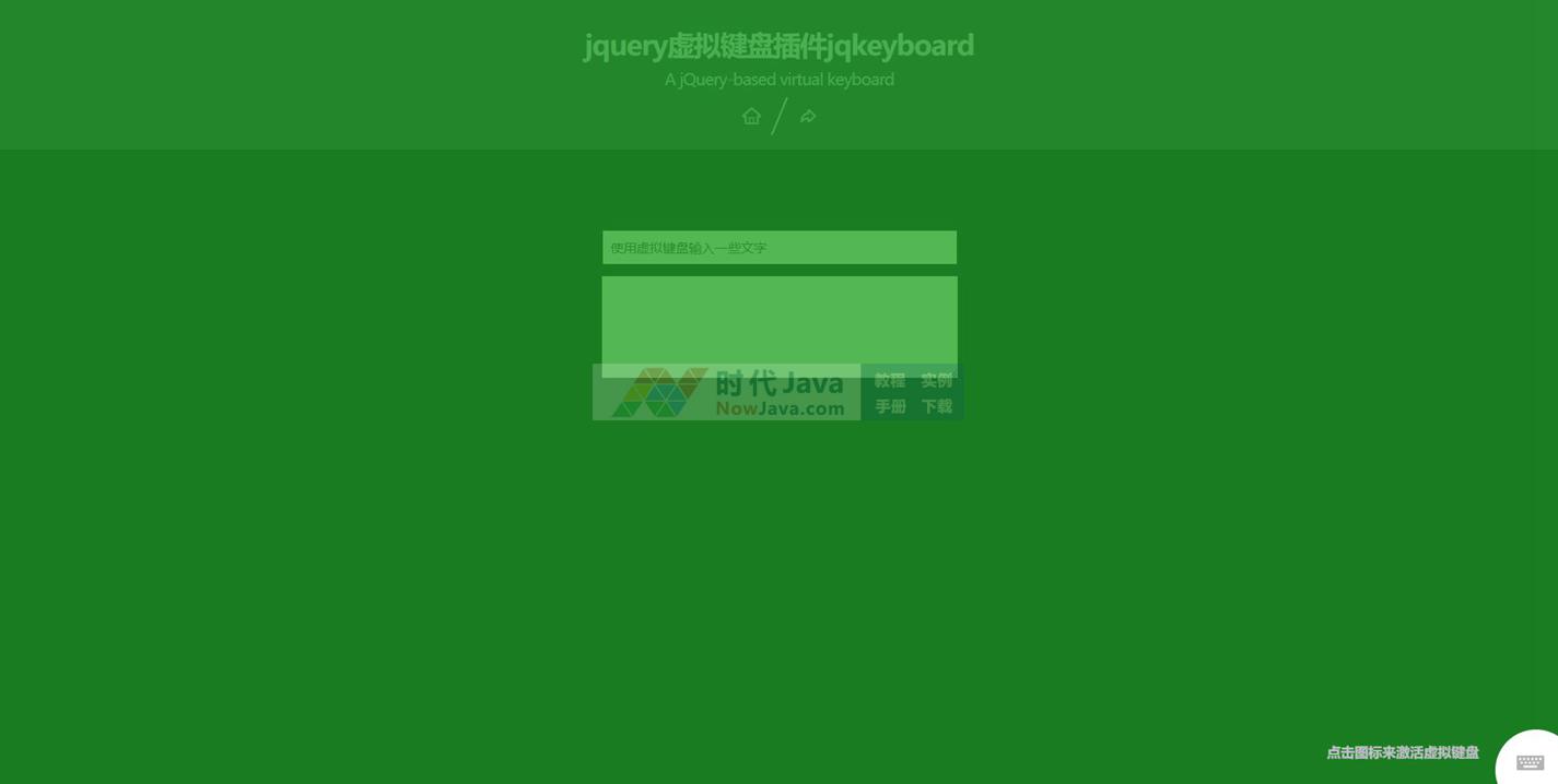 jqKeyboard是一款jquery虚拟键盘插件。该虚拟键盘插件依赖于jquery ui,通过该插件,可以在页面中生成一个扁平风格的虚拟键盘面板。点击右下角键盘标志,键盘就弹出了!