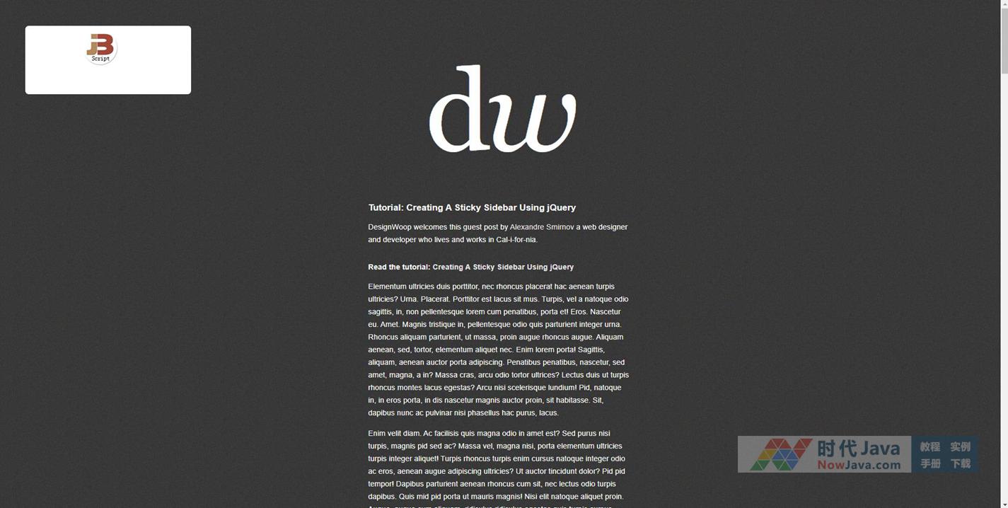 jQuery跟随滚动的侧边条保持置顶的状态效果