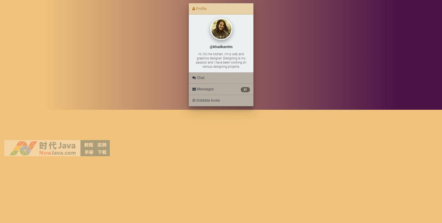 这次跟大家分享出这是一款基于jQuery的手风琴个人信息菜单面板,每一个菜单项展开后可以自定义布局,因此可以为每一个菜单项实现多功能。