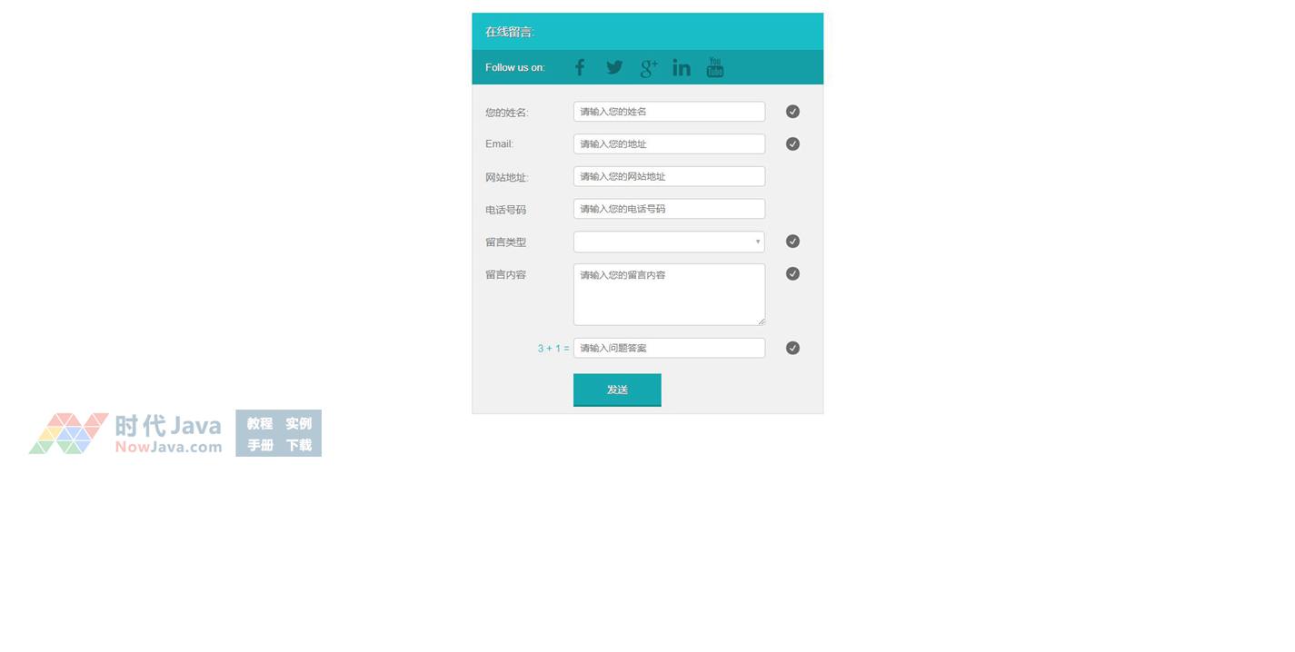jQuery+CSS3实现的留言表格表单内容验证特效源码,是一段主要应用于网页留言页面的表单验证效果代码,实例是针对留言页面制作的,有需要用在如:登录、注册页面的朋友们可以对该段代码进行修改使用。本段代码兼容目前最新的各类主流浏览器,是一款非常优秀的特效源码。
