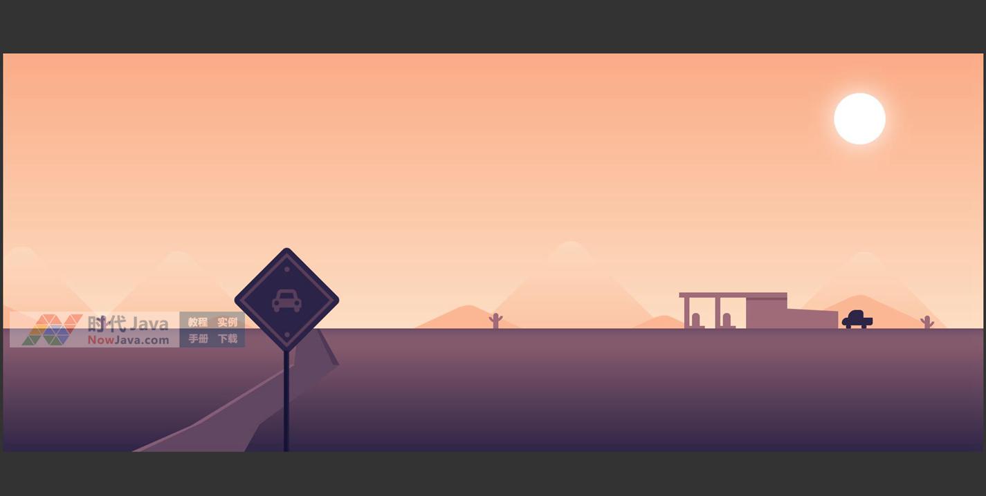 这是一款基于jQuery + CSS3 实现的大漠日落风景动画效果源码。画面中一辆卡通汽车缓缓驶入一个大漠路边的加油站,近处是车辆指示牌与道路,远处是群山与荒漠。再加上天边的夕阳晚霞照耀之下,形成了一幅唯美的大漠落日风景。鼠标滑过时还可看到层叠效果的视差交错动画效果。建议使用支持HTML5与css3效果较好的火狐(Firefox)或谷歌(Chrome)等浏览器预览本源码。