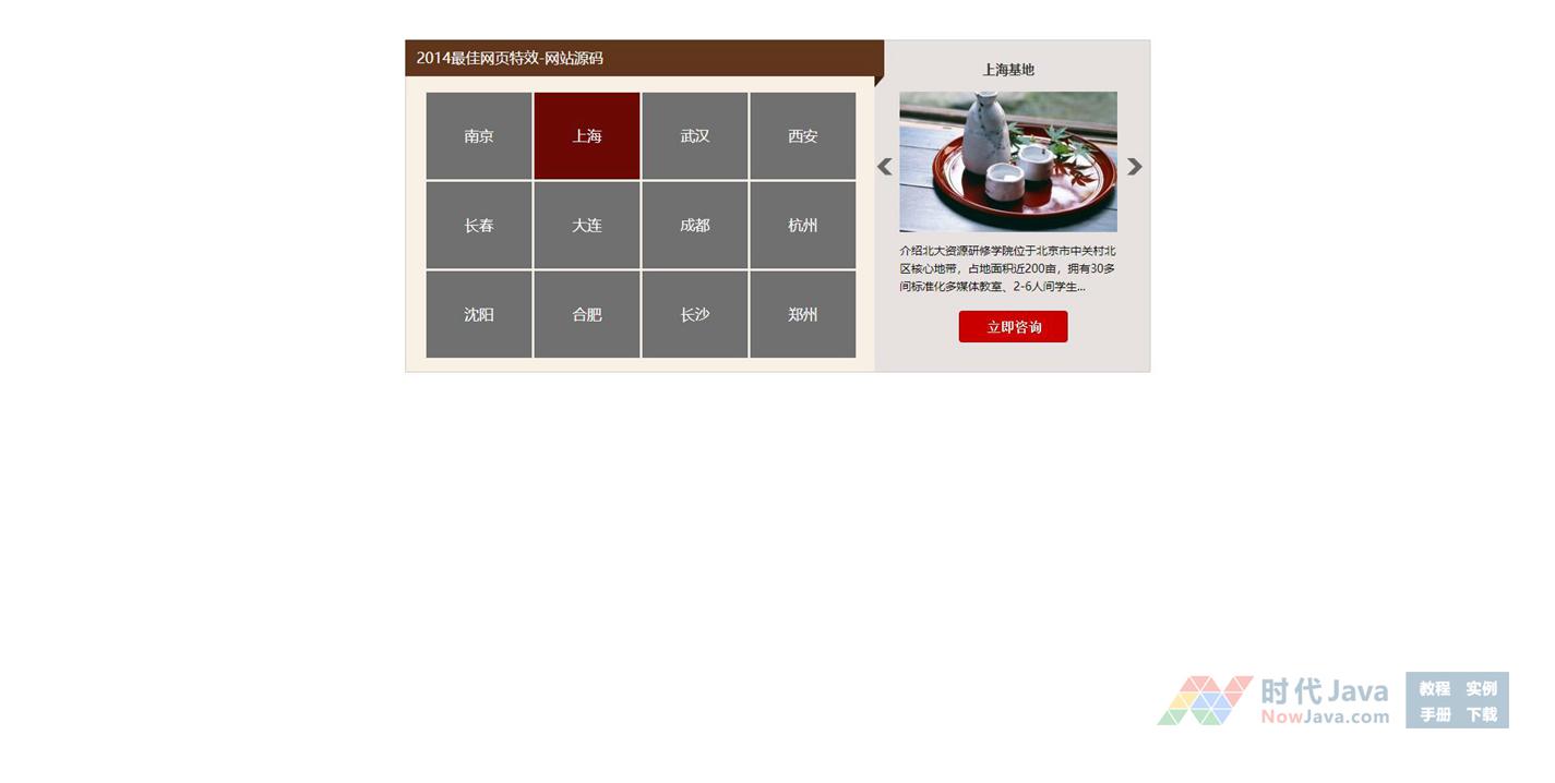 这是一款基于 jQuery实现的多区块点击切换图文特效源码,点击各个区块可在右侧切换对应的图文,切换效果平滑自然,该源码适合做点击缩略图切换大图相册特效。且代码兼容性好,可兼容目前最新的主流浏览器。